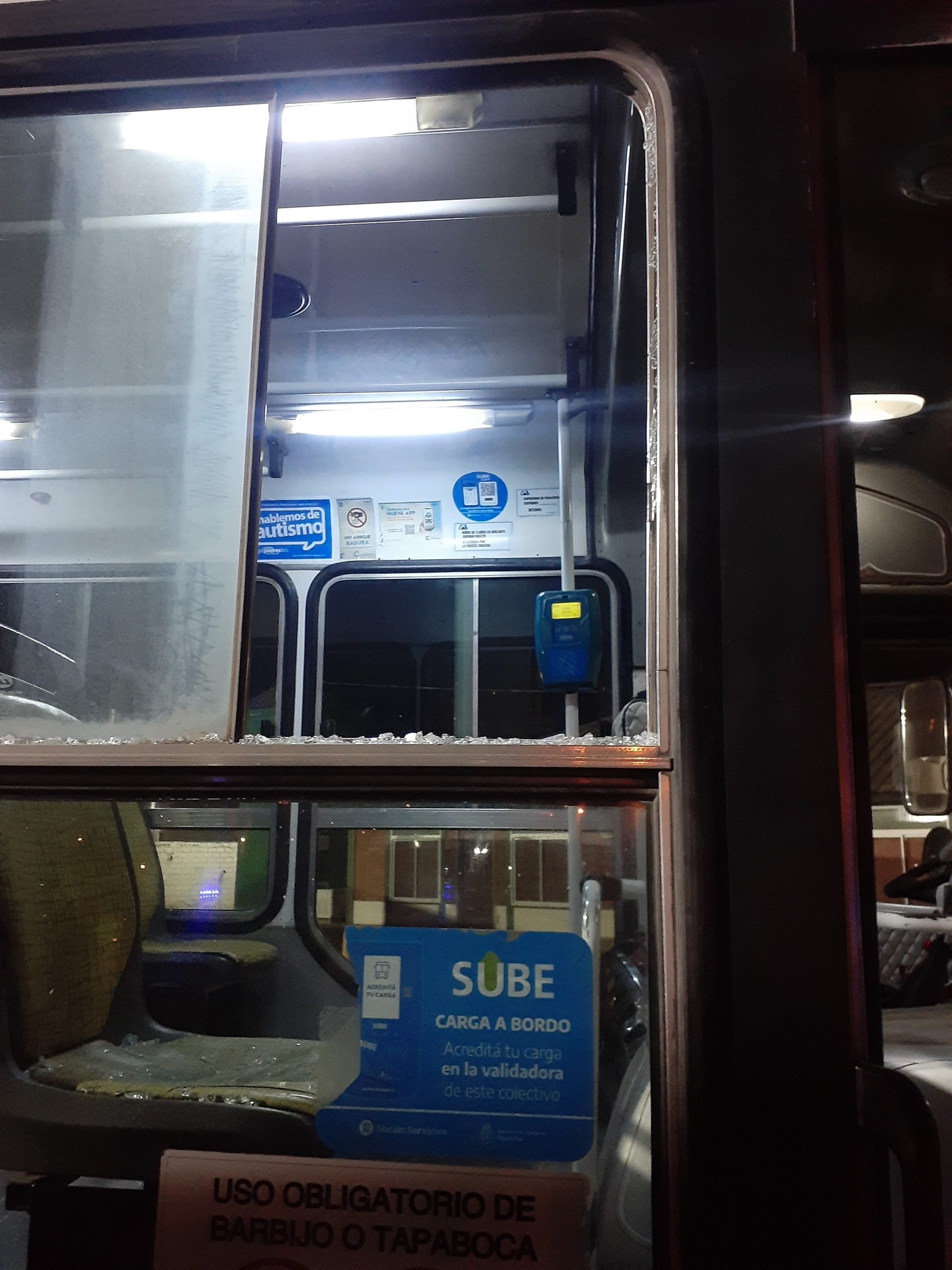El sereno de la empresa se comunicó con la dependencia policial informando que la unidad 36 de la línea 3, volvió a la base debido a que en la Avenida Chile -a la altura de la Vecinal del barrio Abel Amaya- fue apedreado por al menos tres personas.