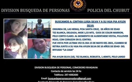 Desde el Refugio La Casa realizaron la denuncia correspondiente. Cinthia Luisa Silva de 28 años y Pia Aylen Silva, fueron vistas por última vez el 15 de mayo a las 8 cuando se retiraron del lugar.