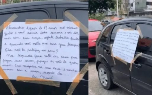 “Alessandro, después de 13 años de vivir juntos, estoy cansada de que desaparezcas todas las semanas para irte a dormir con una chica”, inicia la carta que pegó la mujer entre las dos puertas del auto, para que el hombre no lo pudiera abrir.