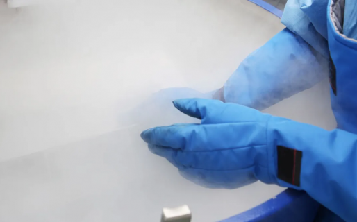 4. Ya en el centro criónico, se lo coloca dentro de una bolsa de nylon y se lo cuelga boca abajo dentro de un “termo” gigante llamado criostato, relleno de nitrógeno líquido a -196 grados, donde aguardará por tiempo indefinido.
