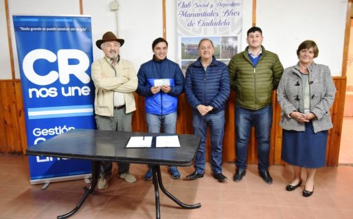 El intendente Carlos Linares entregó un aporte económico por 50.000 pesos al Club Manantiales Behr de Ciudadela. Desde la entidad se informó que será volcado a tareas de refacción del Salón de Usos Múltiples (SUM), completando otras tareas con intervención de maquinaria que por estos días realiza el Municipio en el lugar.