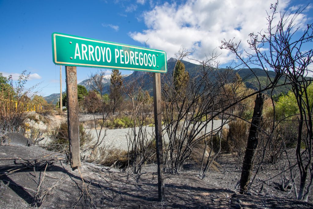 El cartel del Arroyo Pedregoso fue casi consumido por el fuego.