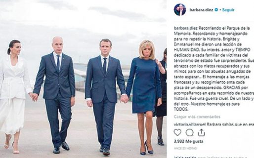 “En homenaje a todos los desaparecidos y asesinados, y sus familias. Por la memoria y la verdad”, escribió Macron en Twitter. “Hoy recorrimos con Emmanuel Macron, presidente de Francia, el Parque de la Memoria”, apuntó breve Rodríguez Larreta. Su mujer prefirió explayarse: junto a la foto de las dos parejas admitió que el memorial recuerda a las “víctimas del terrorismo de Estado” pero al final blanqueó su peculiar interpretación: “Fue una guerra cruel. De un lado y del otro. Nuestro homenaje es para TODOS”, escribió en mayúsculas, sin precisar a quien incluye la primera persona del plural. Cuando una seguidora indagó “si también se acordaron de las víctimas de los ataques perpetrados por terroristas”, Bárbara Diez confirmó que no había tenido un simple desliz. “Recordamos a TODOS. En esas flores estaban TODOS. Así lo siento”, apuntó. Cuando comenzó a recibir críticas por retomar la idea de los “dos demonios”, de la cual en los últimos años se separaron hasta familiares de genocidas que comenzaron a repudiarlos públicamente, la mujer de Rodríguez Larreta reemplazó el texto por otro breve de agradecimiento a Macrón y Briggite. Más tarde dejó una frase: “Flores para cada víctima arrojada al mar o río”, con lo cual evidenció su desconocimiento de que el memorial no incluye sólo a víctimas de “vuelos de la muerte” sino a todos los asesinados o desaparecidos. Ante las nuevas críticas, la mujer que en su portal se presenta como “máster en organización de eventos” eliminó el posteo.