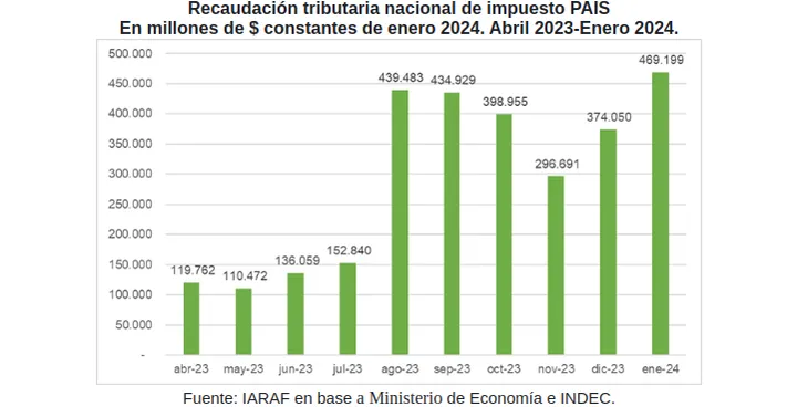 El Instituto Argentino de Análisis Fiscal (IARAF) ha destacado en su informe más reciente que, luego del importante aumento de la carga tributaria del Impuesto PAÍS a fines de julio, cuando se comenzó a gravar la compra de ciertos bienes y servicios importados con una alícuota del 7,5%, la recaudación de este tributo se disparó. En agosto de 2023, experimentó un aumento del 187% en términos reales en comparación con el mes anterior. Estos datos demuestran el impacto significativo que ha tenido este impuesto en las finanzas públicas.