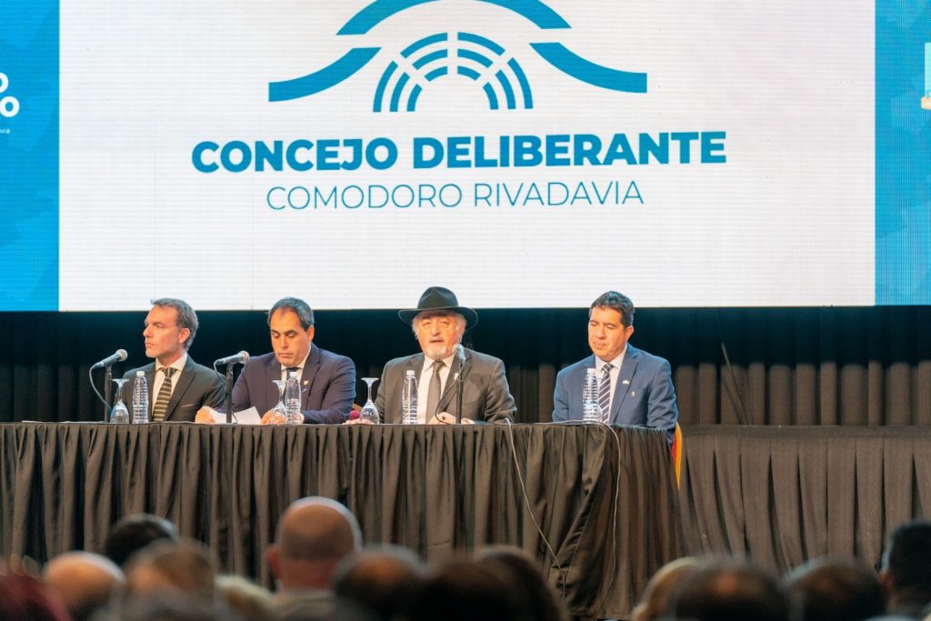 La apertura del LIII Período de Sesiones Ordinarias del Concejo Deliberante se desarrolló este miércoles, en el Centro Cultural, con la presencia del viceintendente y presidente del organismo legislativo local, Maximiliano Sampaoli; el senador nacional Carlos Linares; los diputados nacionales José Glinski y Ana Clara Romero; los intendentes de Rada Tilly y Sarmiento, Mariel Peralta y Sebastián Balochi, respectivamente; los diputados provinciales Leticia Magaldi y Emanuel Fernández; el referente de Relaciones Institucionales de Pan American Energy (PAE), Juan Taccari; la jefa de Asuntos Internos de YPF, Mariana Bersán; el gerente general de Urbana, Levan Macharashvili.