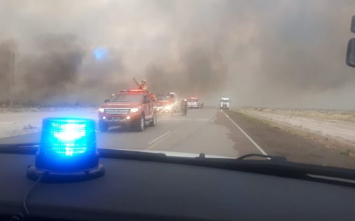 El fuego se inició ayer a unos 15 kilómetros al norte de Puerto Madryn, a la vera de la ruta nacional N° 3 y se propagó, a la vez que cambiaba de dirección por el viento, lo que obligó a cortar el tránsito vehicular en esa ruta y también en las provinciales N° 1 y 2.
