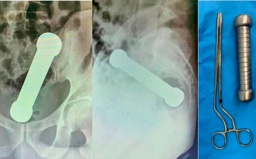 En aquel momento, la víctima, de 54 años, se presentó en un hospital de la ciudad Manaos, noroeste de Brasil, con dolor abdominal, náuseas y dificultad para defecar. Le hicieron una radiografía que mostró que tenía un objeto de metal de 4,4 libras y casi 20 cm en el ano.