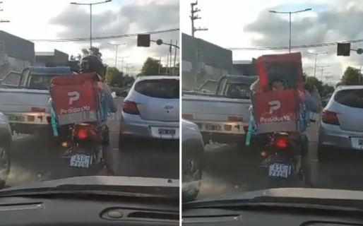 Atascado en medio de la fila de autos, justo detrás de un repartidor de comidas, el hombre advirtió que dentro de la caja térmica donde se guardan los productos que los clientes compran a través de la app había un menor.