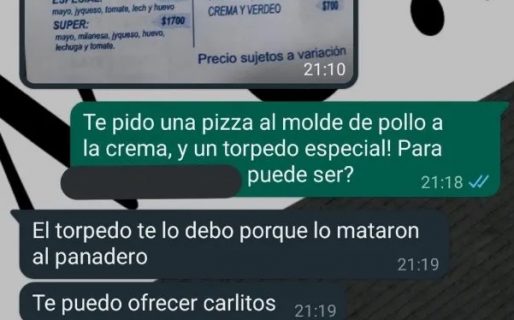 «Cosas que pasan en Rosario cuando pedís un torpedo», escribió el periodista rosarino Santiago Baraldi en su cuenta de Twitter, junto a la captura de pantalla de una conversación que mantuvo con una casa de comidas.