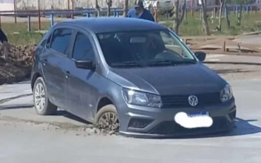 Una mujer que manejaba distraída protagonizó un insólito hecho en la localidad de Pico Truncado, Santa Cruz cuando sin darse cuenta de la señalización ni de la presencia de los trabajadores que pavimentaban la calle, avanzó y quedó atrapada en el cemento fresco.