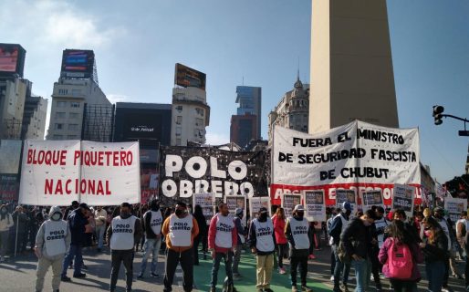 Esta mañana, el Polo Obrero junto con organizaciones piqueteras independientes plasmaron la iniciativa de dirigirse a dicho inmueble en Capital Federal a fin de repudiar lo que consideran como ‘actividades fascistas’ de la policía de Chubut y su defensa por parte del Ministro de Seguridad de la provincia.