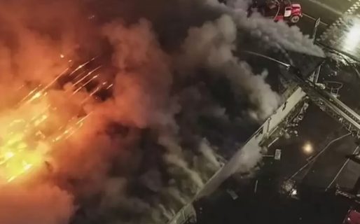 Imágenes de la televisión estatal mostraron a decenas de bomberos y personal de emergencia luchando contra el inmenso incendio que devoró el edificio de un piso. Otros videos mostraron el lugar totalmente calcinado.