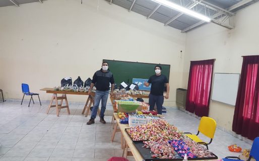 Desde la vecinal del barrio Gobernador Fontana, decidieron realizar bolsas de golosinas para los chicos de zona norte. Repartieron el presente a los niños, cumpliendo con todos los protocolos de seguridad, barbijo, distanciamiento social y guantes.