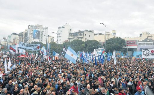 “Rompamos las cadenas de un ciclo veloz y brutal de endeudamiento externo, que pretende condenar a generaciones de argentinas y argentinos a seguir pagando los negocios que están haciendo unos pocos”, se escuchó decir, desde los altavoces del escenario, al actor Gerardo Romano cuando leyó la proclama consensuada por las distintas organizaciones políticas, sociales, sindicales y culturales que ayer convocaron a una manifestación por el Día de la Independencia bajo la consigna “La patria no se rinde”. Cientos de miles de personas, según los organizadores, participaron con banderas argentinas y carteles expresando su rechazo al acuerdo del Gobierno con el Fondo Monetario Internacional (FMI).