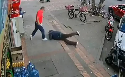 Un hombre mayor recibió este jueves una brutal golpiza por parte de un peatón luego de tropezar y apoyarse en el agresor para evitar caerse al suelo. La violenta confusión tuvo lugar en la localidad de Fontibón, Colombia y quedó registrada gracias a una cámara de seguridad instalada a las afueras en un comercio.