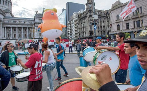 El “Baby Trump”, un muñeco inflable gigante que ridiculiza al presidente de los Estados Unidos en cada país que visita, se ubicó de espaldas al Congreso junto al acoplado-escenario del Movimiento Evita donde a la noche tocaron varias bandas. En la plaza y la calle se mezclaron activistas de distintos países y temáticas reunidos por la “Confluencia Fuera G-20/FMI”, un colectivo integrado por organizaciones internacionales como ATTAC, Action for Argentina (británica) y Anticapitalistas en Red, y más de 60 actores locales como Barrios de Pie, Diálogo 2000, la CTEP, el MST o el MP La Dignidad. Los actos de protesta contra el G-20 habían comenzado el martes con un acto masivo de movimientos sociales en Atlanta, continuaron el miércoles con una conferencia en la sede del Serpaj y con la primera jornada de la “Fiesta de los Pueblos”, en Ciencias Sociales de la UBA.