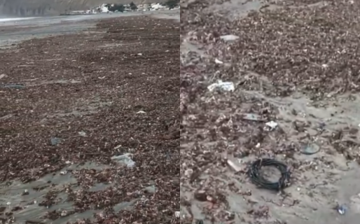 Esta tarde circuló un video en el que una mujer muestra el estado actual de la playa de Rada Tilly. En las imágenes se pueden observar elementos de plástico, varias botellas y cables dispersos sobre la arena, lo que ha generado preocupación entre los vecinos.