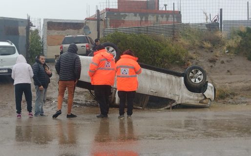 Se trata de una camioneta doble cabina que perdió el control en un sector de la zona sur que sufre las inclemencias del tiempo que se abaten sobre Comodoro Rivadavia.