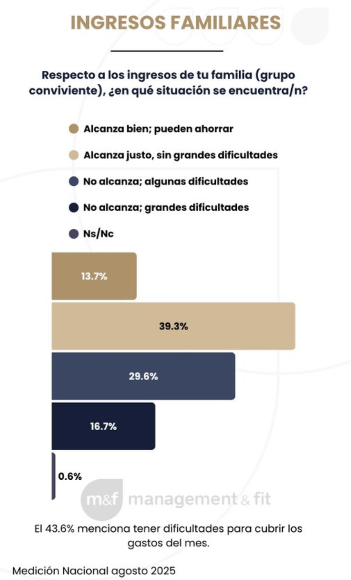 El 53% de los hogares asegura que llega a fin de mes, mientras que al 46,3% los ingresos no les alcanzan para cubrir sus gastos mensuales.