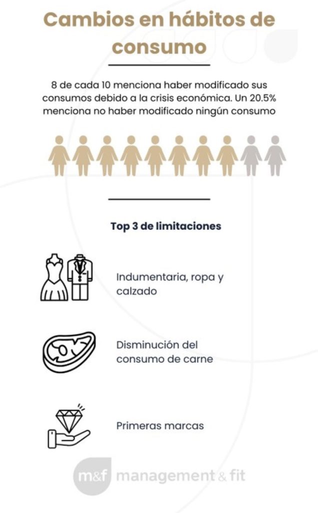 Un nuevo sondeo nacional de la consultora Management & Fit refleja cómo la crisis económica impacta en la vida diaria: 8 de cada 10 personas aseguran haber modificado sus hábitos de consumo para poder afrontar la situación. Los recortes se enfocan en carne, calzado, indumentaria y primeras marcas.