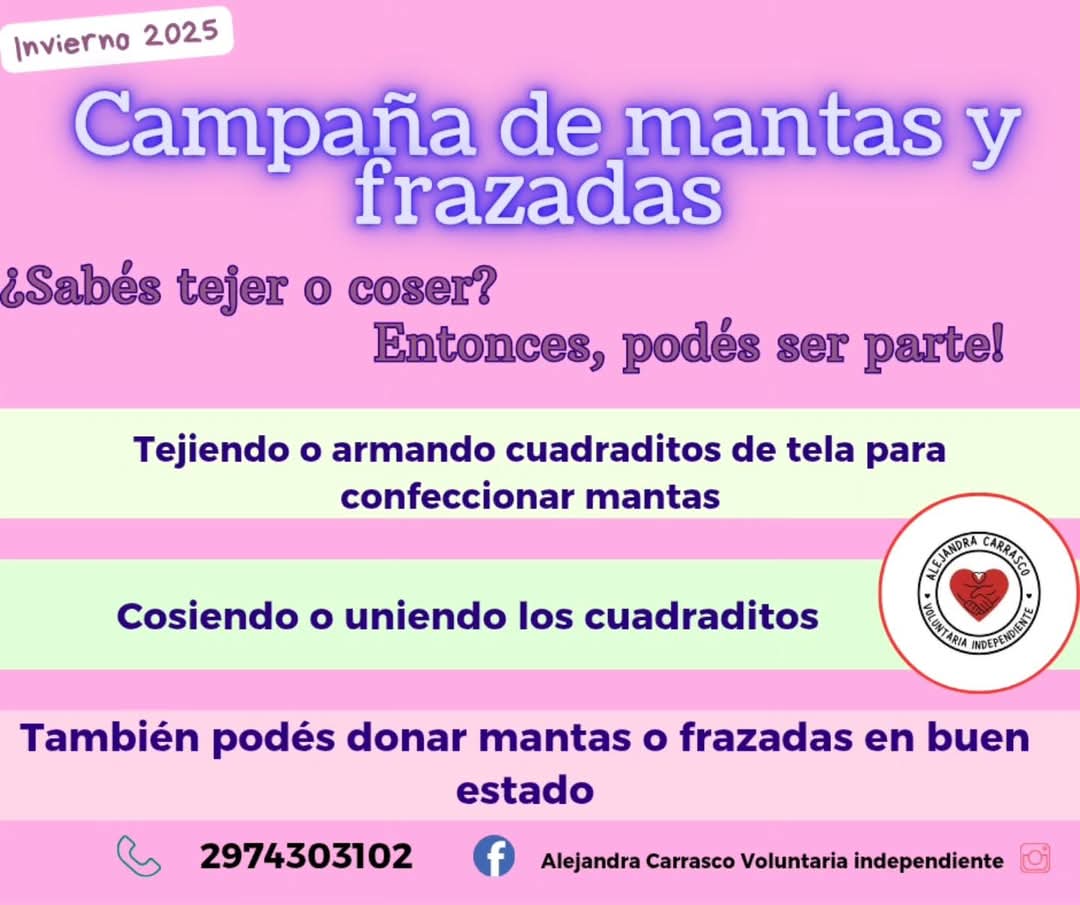 Con la llegada de las bajas temperaturas, en Comodoro Rivadavia se renueva una iniciativa que ya es sinónimo de compromiso social. Se trata de la Campaña de Mantas y Frazadas, impulsada por Alejandra Carrasco, una referente del voluntariado independiente en la ciudad, que desde hace casi cinco años coordina acciones solidarias en distintos barrios.