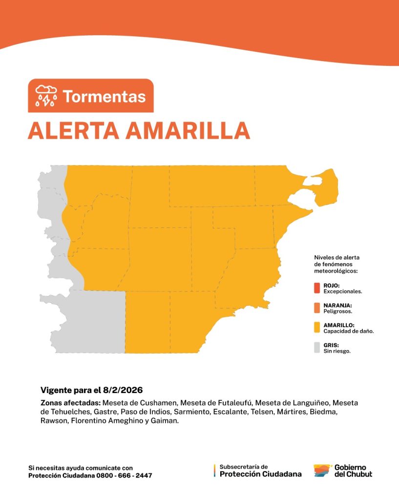 Las zonas afectadas son la Meseta de Cushamen, Meseta de Futaleufú, Meseta de Languiñeo, Meseta de Tehuelches, Gastre, Paso de Indios, Sarmiento, Escalante, Telsen, Mártires, Biedma, Rawson, Florentino Ameghino y Gaiman.