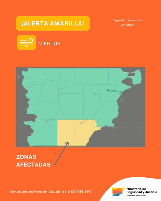 Se esperan vientos provenientes del oeste con velocidades sostenidas entre 45 y 65 km/h. Las ráfagas podrían superar los 90 km/h, incrementando el riesgo de daños y peligros para la población y la infraestructura.