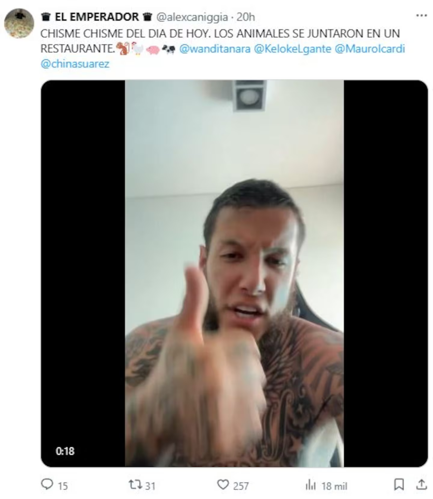 “Chisme, chisme del día de hoy. Los animales se juntaron en un restaurante y no fue tan grato. El ciervo, el mono, un siamés y un gato barato. Entre los cuatro no hago uno y les tiro este dato. El que se está ca… de risa es Maxi López, que en Europa tiene un contrato billonario”, lanzó.
