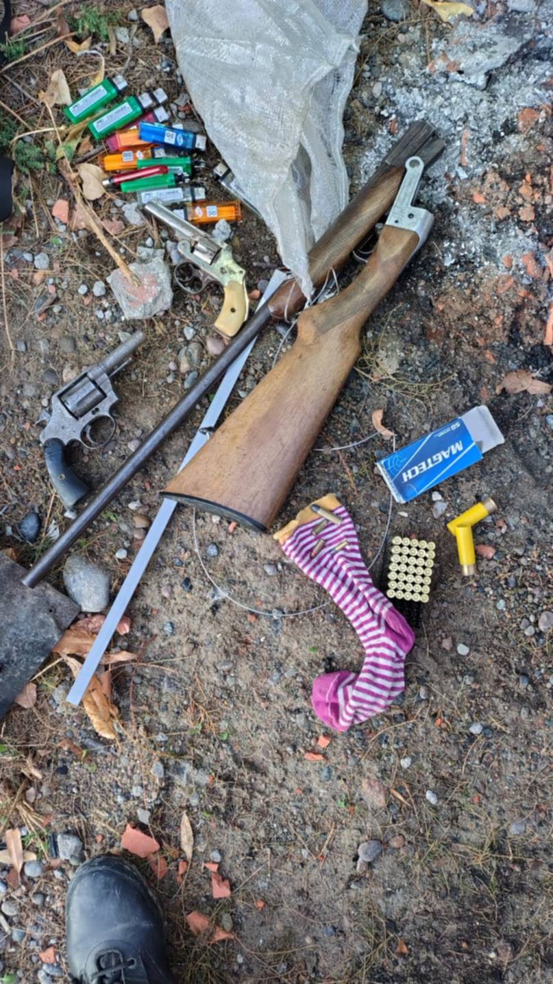 La policía allanó este jueves en un asentamiento barrial de la zona este de Trelew a dos hermanos, que se dedicaban a usurpar casas a punta de pistola y en el domicilio de uno de ellos –que terminó preso— encontraron cuatro tumberas, una escopeta, dos revólveres, municiones y hasta un juego de esposas que podrían ser robadas a algún miembro de la fuerza.