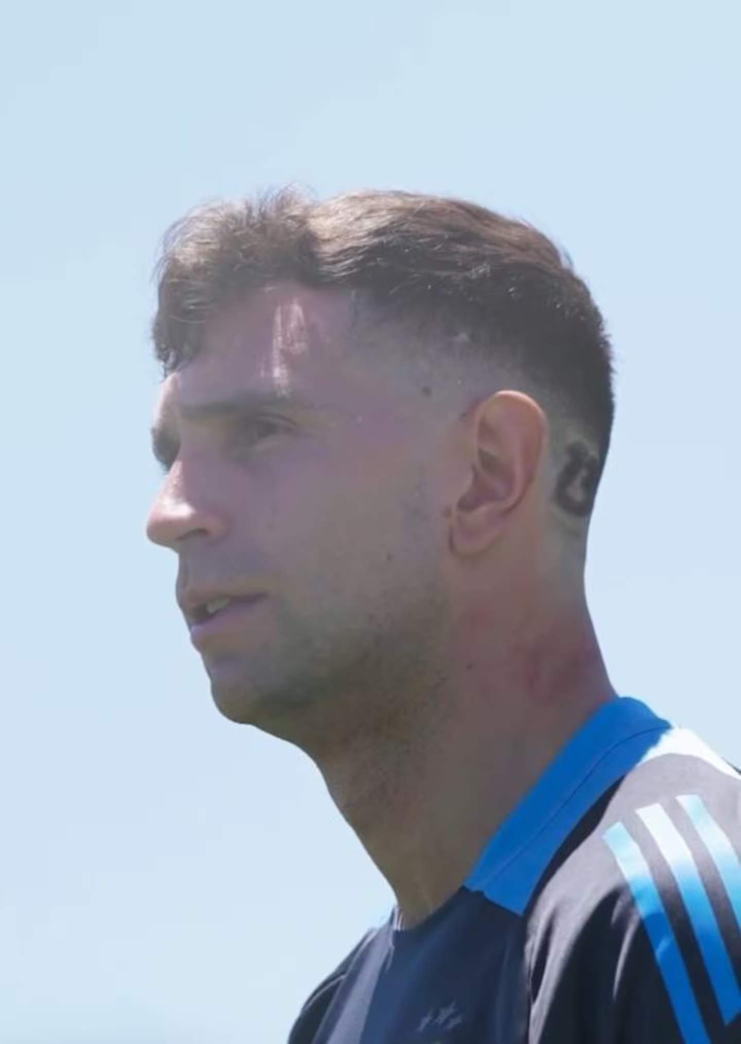 El arquero del Aston Villa compartió un video a través de su cuenta de Instagram durante el entrenamiento de la Albiceleste previo al enfrentamiento contra la Albirroja, en el que mostró su nuevo corte de pelo: el número 23, el mismo que lleva en su camiseta.