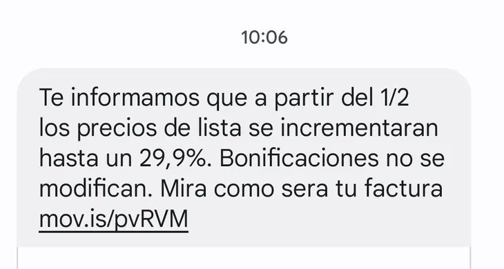 Según constató el medio Ámbito, muchos usuarios del servicio de telefonía móvil fueron anoticiados con la suba mediante un mensaje de WhatsApp, en el que les marcaban que el aumento sería del 30%. Una de las compañías fue Movistar.