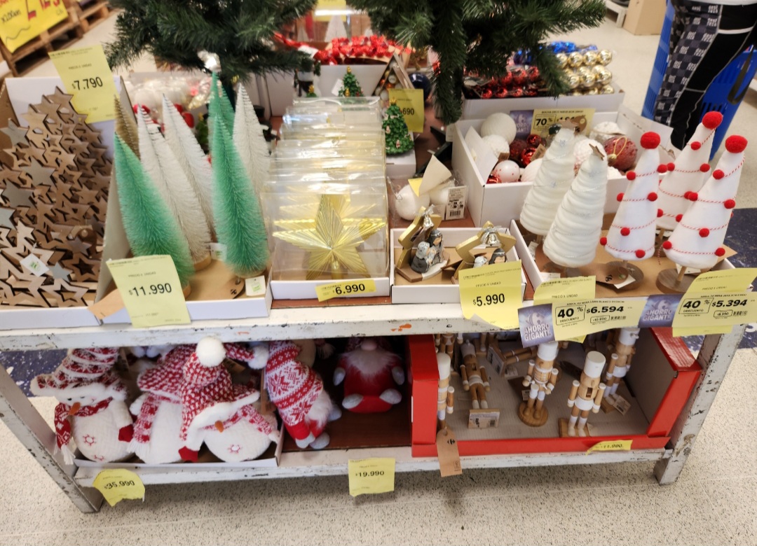 Las guirnaldas tienen precios que van desde 2.500 hasta 4.000 pesos, los adornos individuales comienzan en 900 pesos, y un set de diez botitas decorativas alcanza los 8.000 pesos. Además, las estrellas doradas o adornos para la punta se ofrecen por 6.500 pesos.