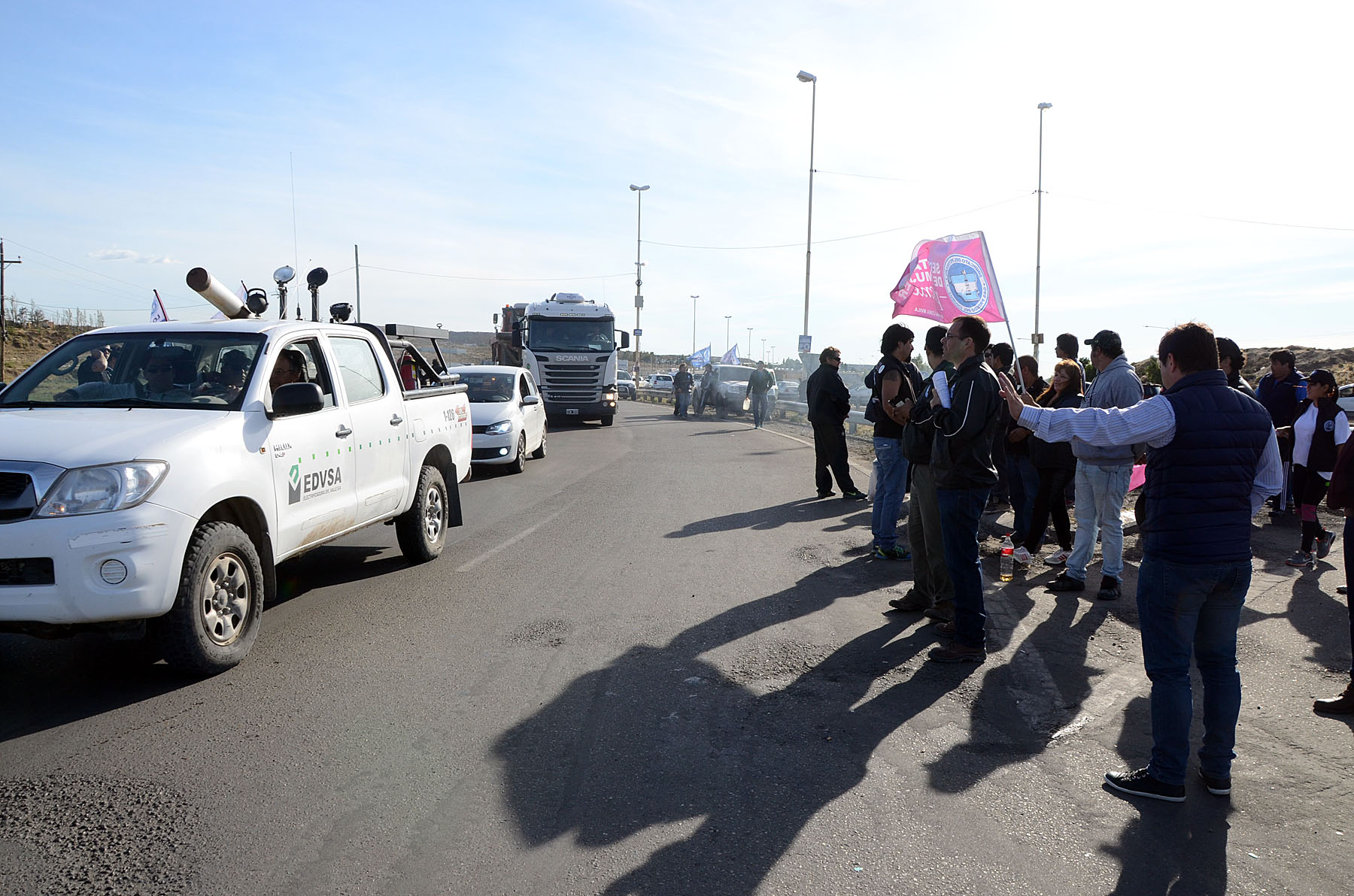 Los trabajadores petroleros estuvieron desde muy temprano hoy en las rutas de acceso a Comodoro Rivadavia y Sarmiento. En la urbe petrolera, realizaron una gran movilización con entrega de panfletos en los cruces de las rutas 3 y 26; y 3 y 39 a los vehículos que los transportaban a los yacimientos, demorando su ingreso a los mismos, a fines de concientizar acerca de la situación de los trabajadores ante la postura de la operadora Tecpetrol, violentando la medida de conciliación obligatoria que vence el próximo miércoles, bajando la actividad y enviando telegramas de despidos.