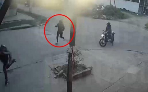 Como se puede ver en las imágenes captadas por una cámara de seguridad, Jeremías, un alumno de cuarto año de la escuela secundaria número 30, salía del establecimiento cuando en la esquina fue sorprendido por dos delincuentes a bordo de una moto.