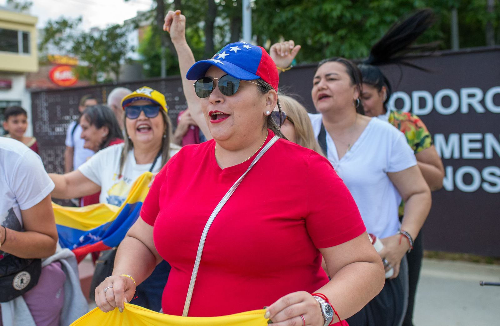 En medio del recorrido, la manifestación se vio interrumpida por la presencia de otro grupo identificado con sectores de izquierda, que salió a la calle con pancartas y consignas en rechazo a la figura del expresidente estadounidense Donald Trump. Entre los carteles que exhibieron se destacaban mensajes como “FUERA TRUMP”.
