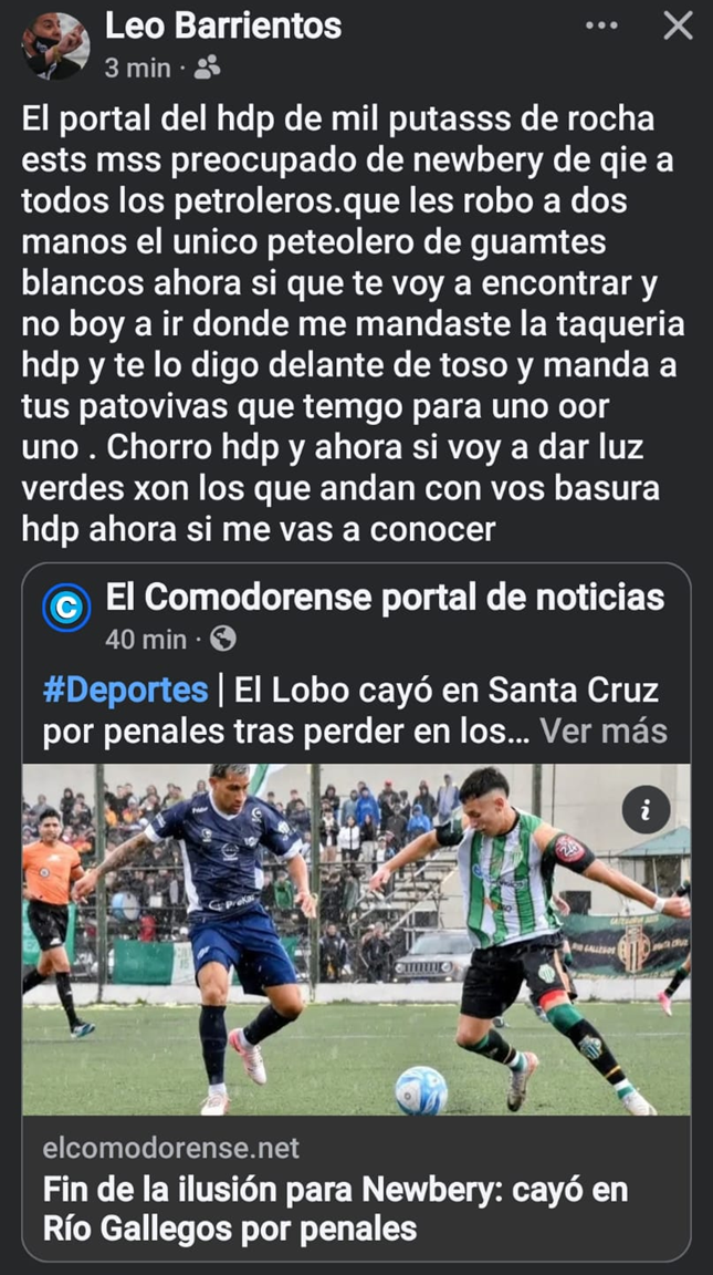 Leonardo Barrientos, vicepresidente del Club Jorge Newbery, amenazó a este medio de comunicación por dar a conocer el resultado de la semifinal del Torneo Regional Amateur que tuvo como ganador a Boxing de Río Gallegos por sobre el Lobo.