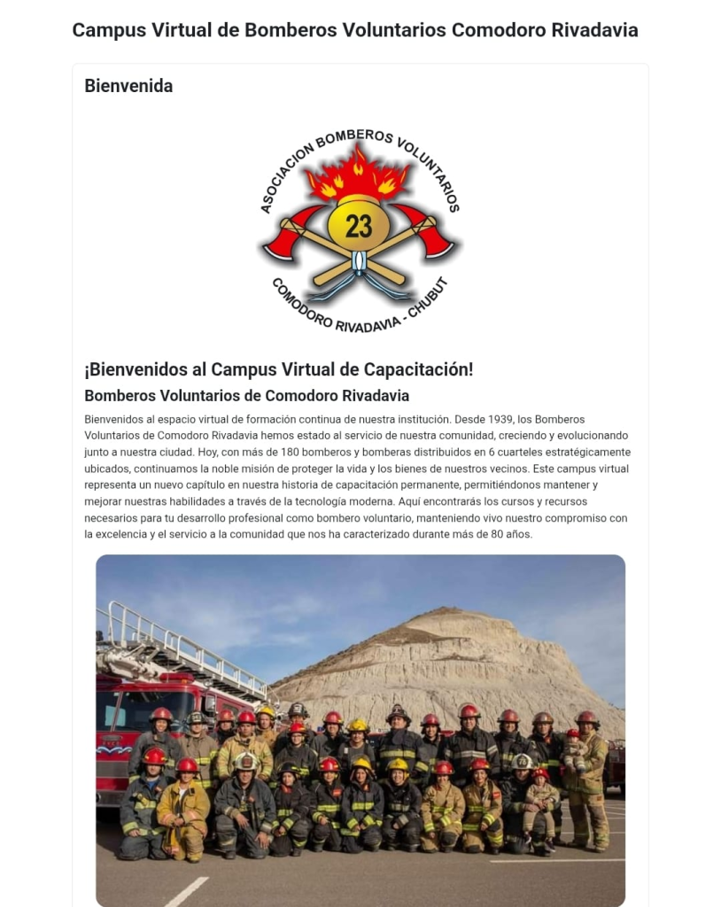 En diálogo con FM La Petrolera 89.3 MHz, el segundo jefe del cuerpo activo, Diego Galleguillo, explicó que el proyecto comenzó a gestarse a mediados del año pasado y que hoy ya está operativo: «Con esta página, el personal puede capacitarse desde su casa y luego asistir solo a las prácticas presenciales. Es una herramienta para mantener activo al personal sin quitarle tanto tiempo a su vida personal”, destacó.