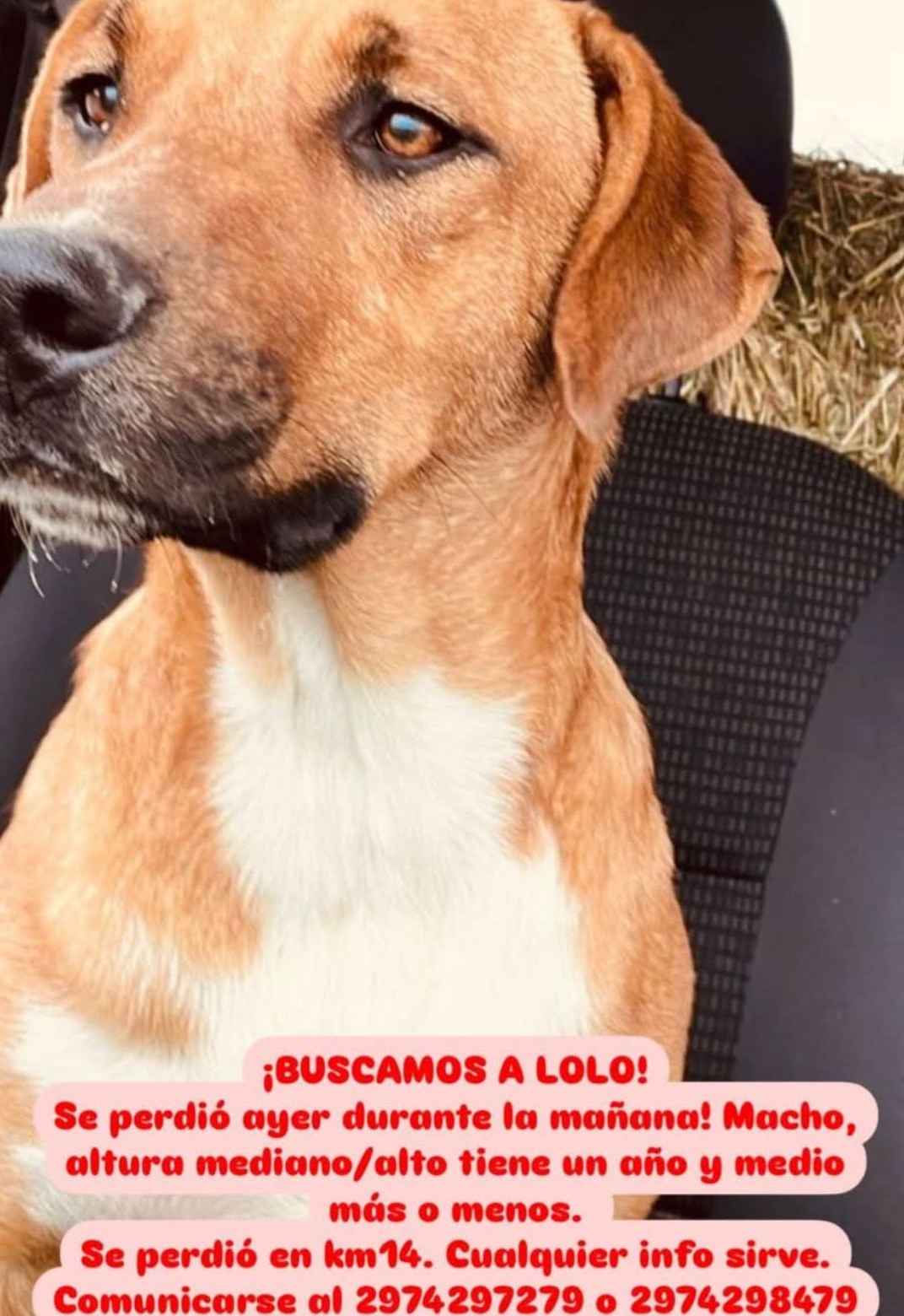 Lolo es un perro macho castrado de un año y medio que se perdió el pasado lunes en el Kilómetro 14 de Comodoro.