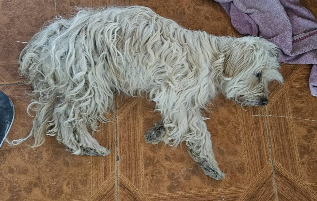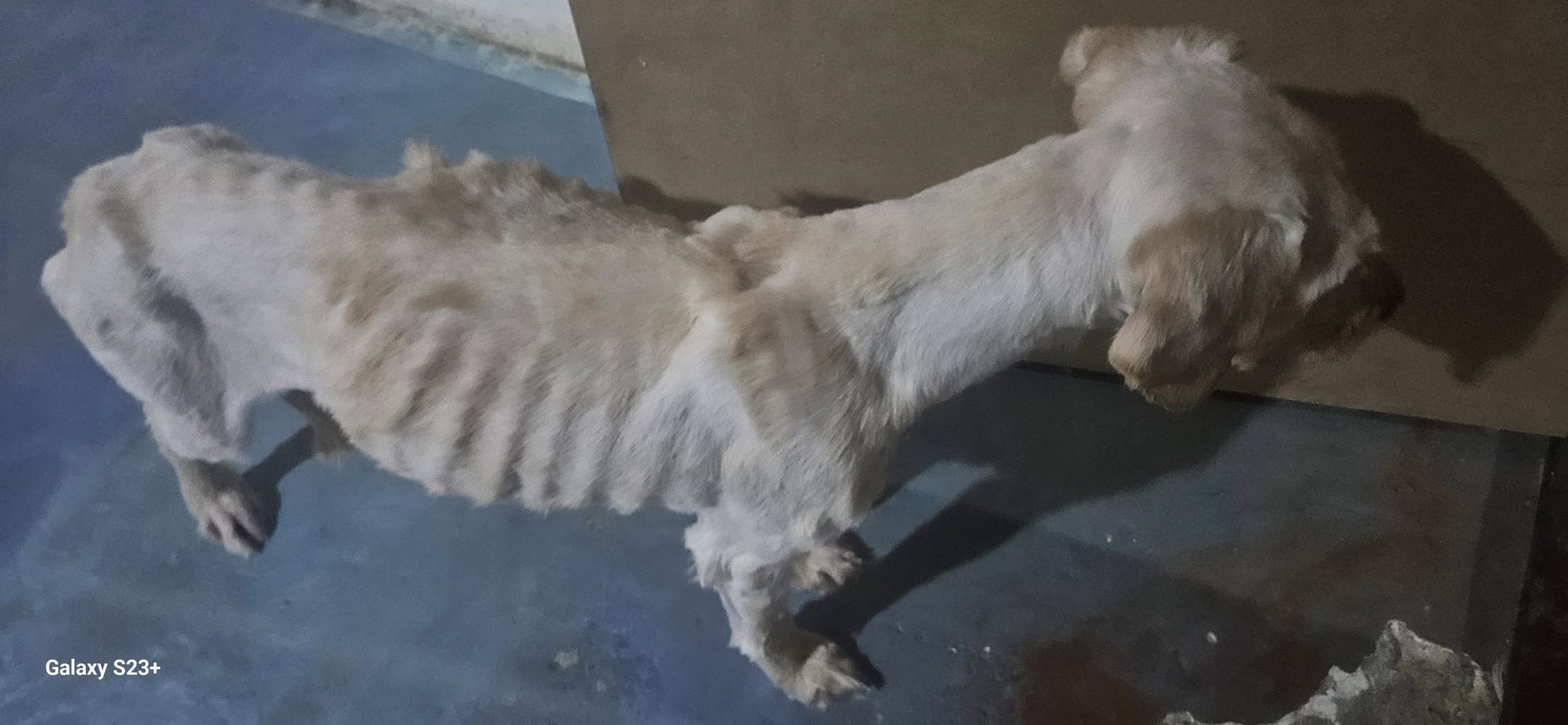 La perrita estaba muy débil y extremadamente flaca, sin fuerzas para mantenerse en pie. Gracias a la rápida intervención de su rescatista, fue llevada de inmediato a una veterinaria donde recibió tratamiento urgente para estabilizarla.