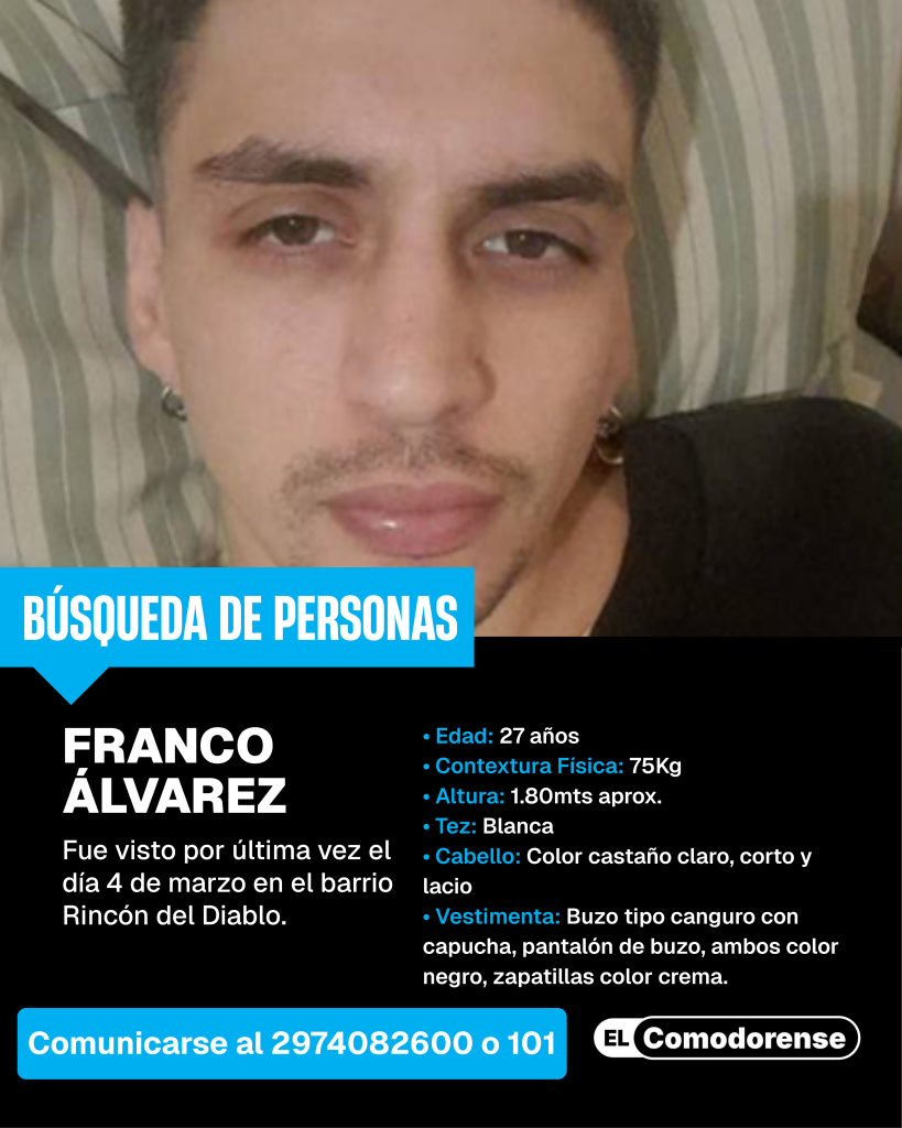 La División Búsqueda de Personas inició un operativo para dar con Franco Joel Ojeda Álvarez de 27 años.