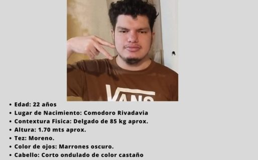 Ante cualquier información que pueda ayudar a encontrarlo, se solicita comunicarse con la División Búsqueda de Personas de Comodoro Rivadavia o al teléfono 297 408-2600.