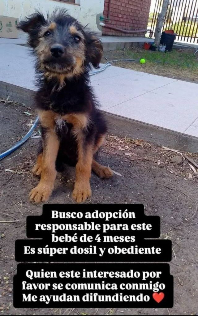A través de las redes sociales, se difundió un pedido solidario para encontrar una adopción responsable para un cachorro de aproximadamente cuatro meses de edad.