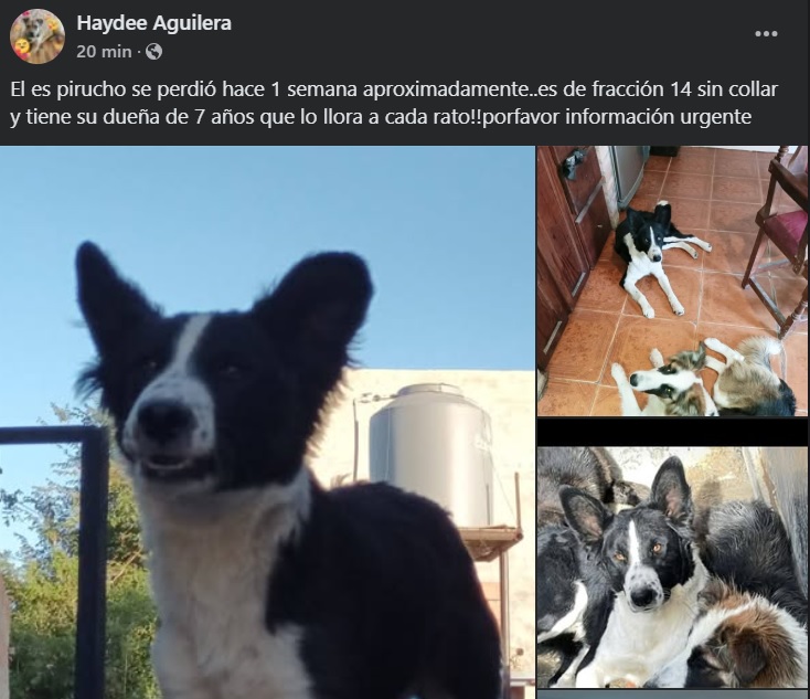 La comunidad ha comenzado a movilizarse, compartiendo la publicación. Cualquier información sobre su paradero puede ser clave para que Pirucho se reencuentre con su familia.