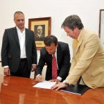 En su despacho de Casa de Gobierno, el gobernador Martín Buzzi rubricó esta tarde el acta de traspaso temporal de mando por el cual el vicegobernador Gustavo Mac Karthy queda a cargo del Poder Ejecutivo, mientras dure la ausencia del primer mandatario provincial quien inició un breve período de descanso.