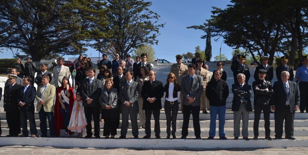 El acto conmemorativo se llevó adelante en la Plaza Central San Martín con la presencia del vice gobernador, César Mc Karthy, la intendente local, Ramona Rosales junto a miembros de su gabinete y el intendente comodorense Néstor Di Pierro junto al vice intendente, Carlos Linares, y el secretario de Economía, Diego Touriñan.