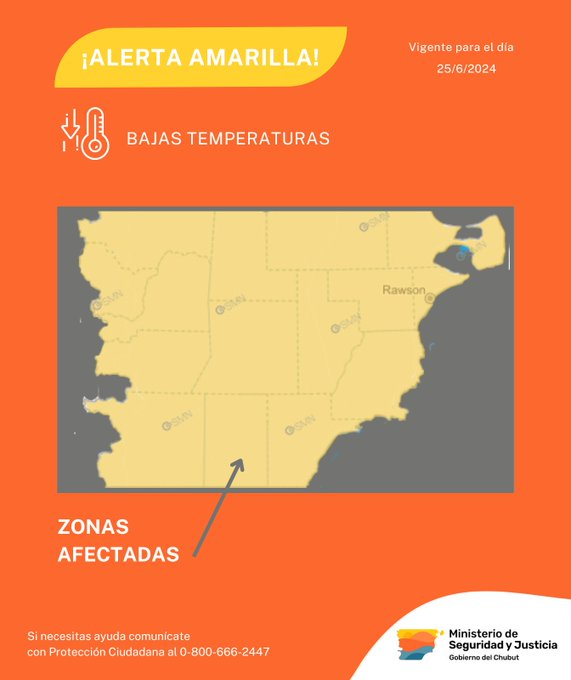 En el caso de Chubut, toda la provincia está afectada por la alerta amarilla. Es más, se trata de una zona que ya viene muy golpeada por el temporal. Tan es así que, tras las intensas nevadas, muchos caminos rurales quedaron tapados por una gran cantidad de nieve acumulada.