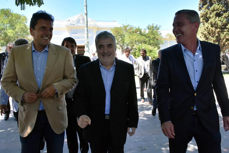 Massa arribó a Chubut en compañía de los diputados nacionales Felipe Solá y Héctor Daer además del presidente del PJ de Córdoba y senador nacional, Carlos Caserio y el economista Aldo Pignanelli, y tras un encuentro político institucional encabezado por Das Neves junto a legisladores nacionales por Chubut, el líder del Frente Renovador dijo que “el gobernador sabe que cuenta con 40 diputados nacionales y un conjunto de senadores dispuestos a defender Chubut de aquellos que no entiendan que hay que cuidar el nivel de actividad económica para cuidar la capacidad de consumo de los trabajadores y las familias de la provincia”.