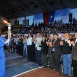 Finalmente, dirigiéndose a los jóvenes deportistas que llenaban el gimnasio, expresó: «Ustedes nos han demostrado que podemos estar tranquilos que esos tiempos oscuros no vuelven nunca mas, y que esta Patagonia argentina y la Patagonia chilena van a ir cada vez más arriba, de la mano de un pueblo diferente, de un pueblo alegre, de un pueblo que vive en paz y fraternidad».