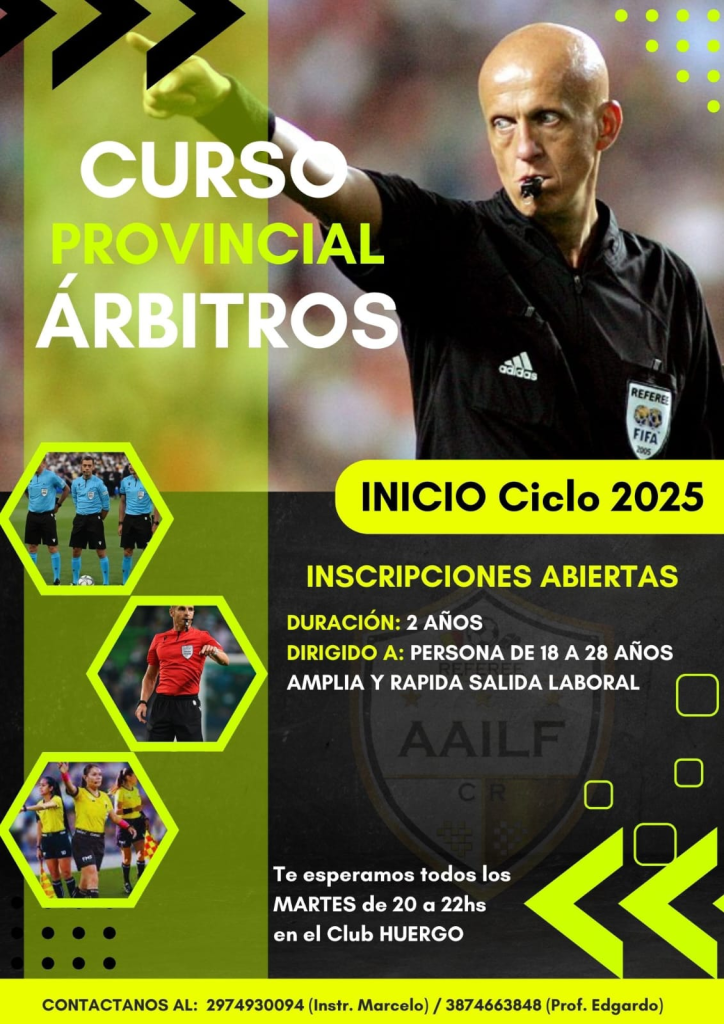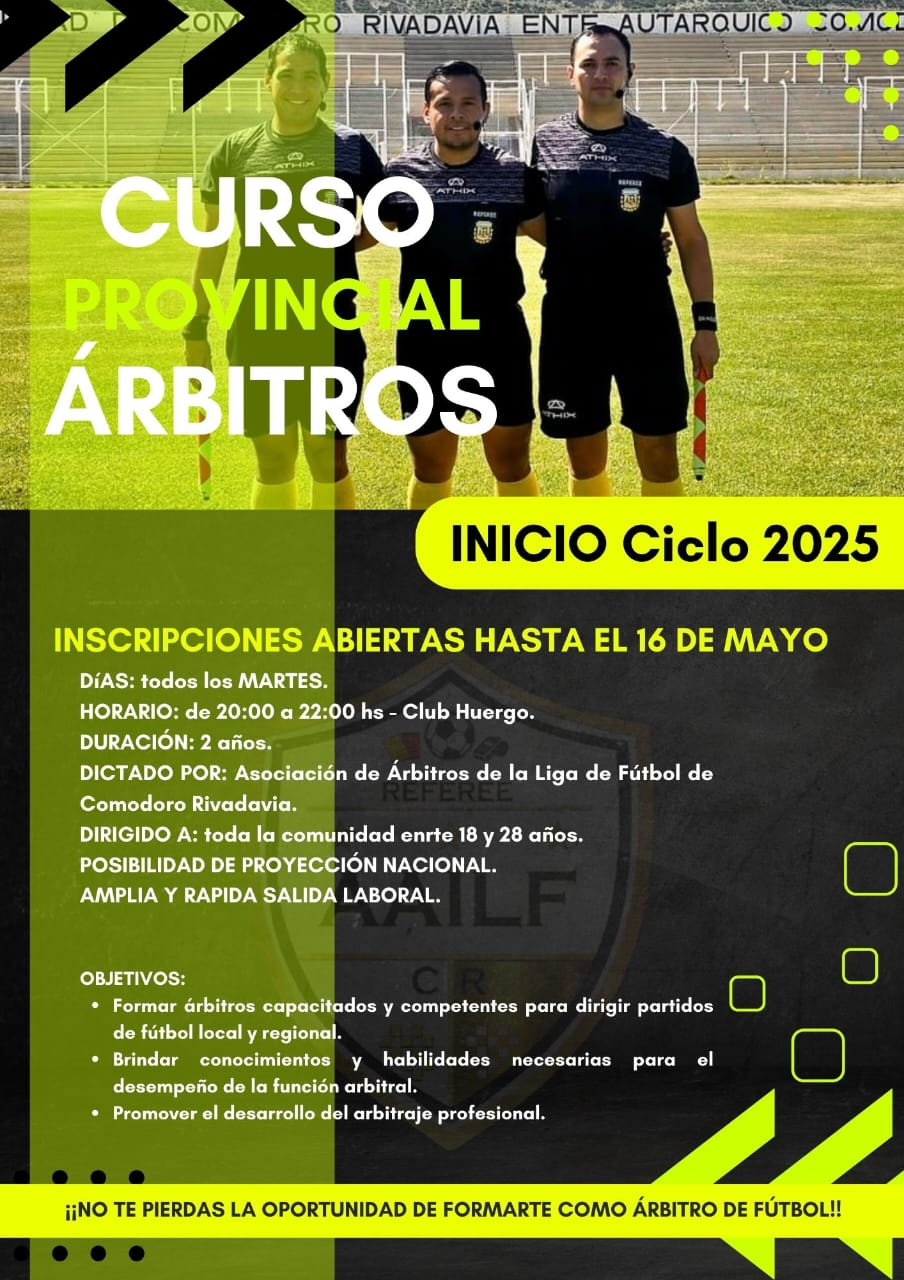 El curso provincial de árbitros está próximo a comenzar en Comodoro, y las inscripciones están abiertas hasta el 16 de mayo.