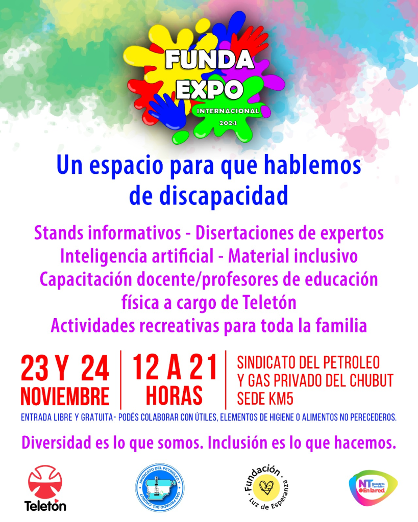 La Expo Funda se desarrollará durante dos días: el sábado 23 y el domingo 24, de 12 a 21 horas, con entrada libre y gratuita. Habrá actividades para toda la familia, que incluirán shows musicales, muestras de danza, disertaciones sobre derechos de las personas con discapacidad y asesoramiento legal. También se presentará un software innovador diseñado por David de La Rioja, que convierte voz a lengua de señas a través de un avatar.